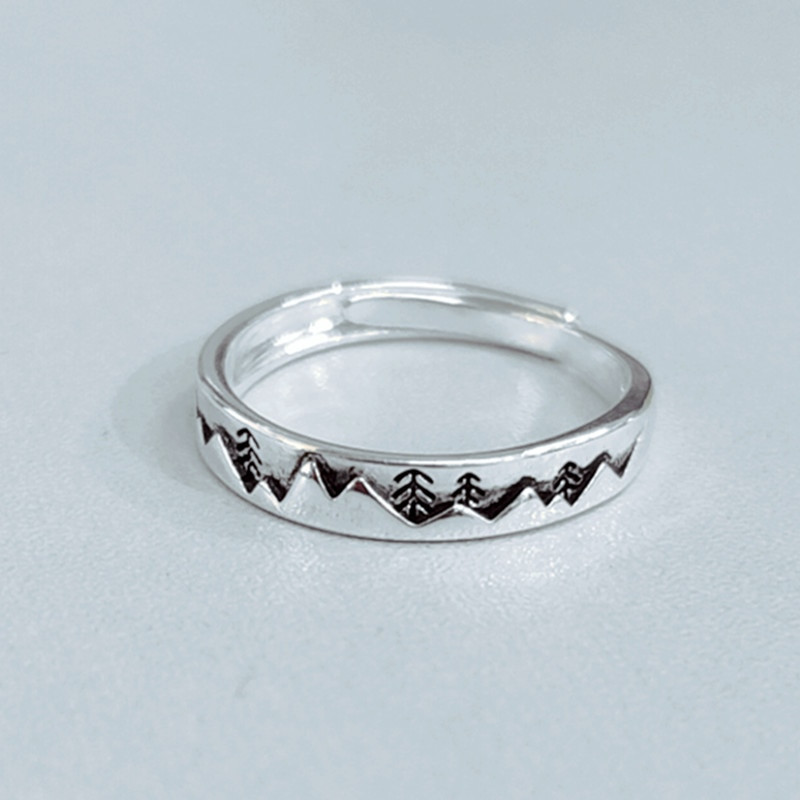 Silver Plated Mountain Ring Adjustable, Tree Pattern Open Band Ring For Women