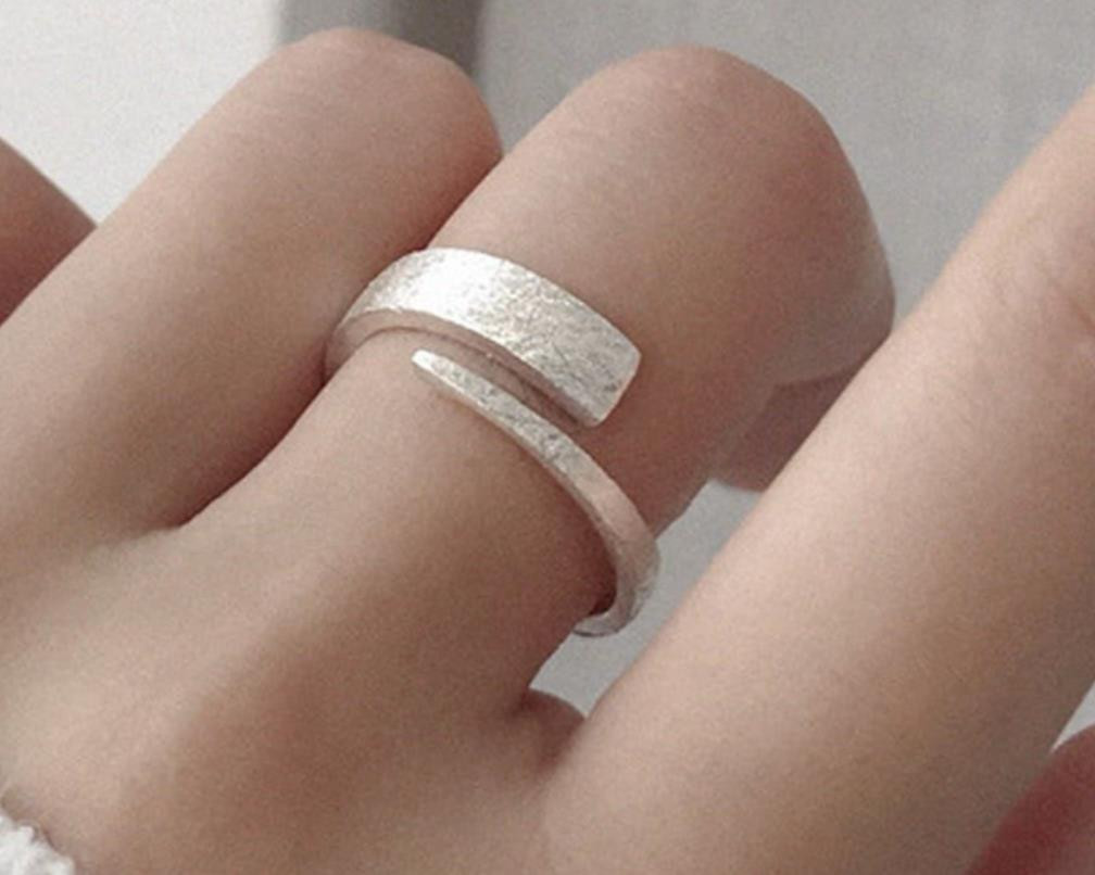 Silver Ring For Women | Thin Dainty Adjustable Ring | Boho Ring | Silver Adjustable Ring, Brushed Metal Ring, Minimalist Ring, Simple Band