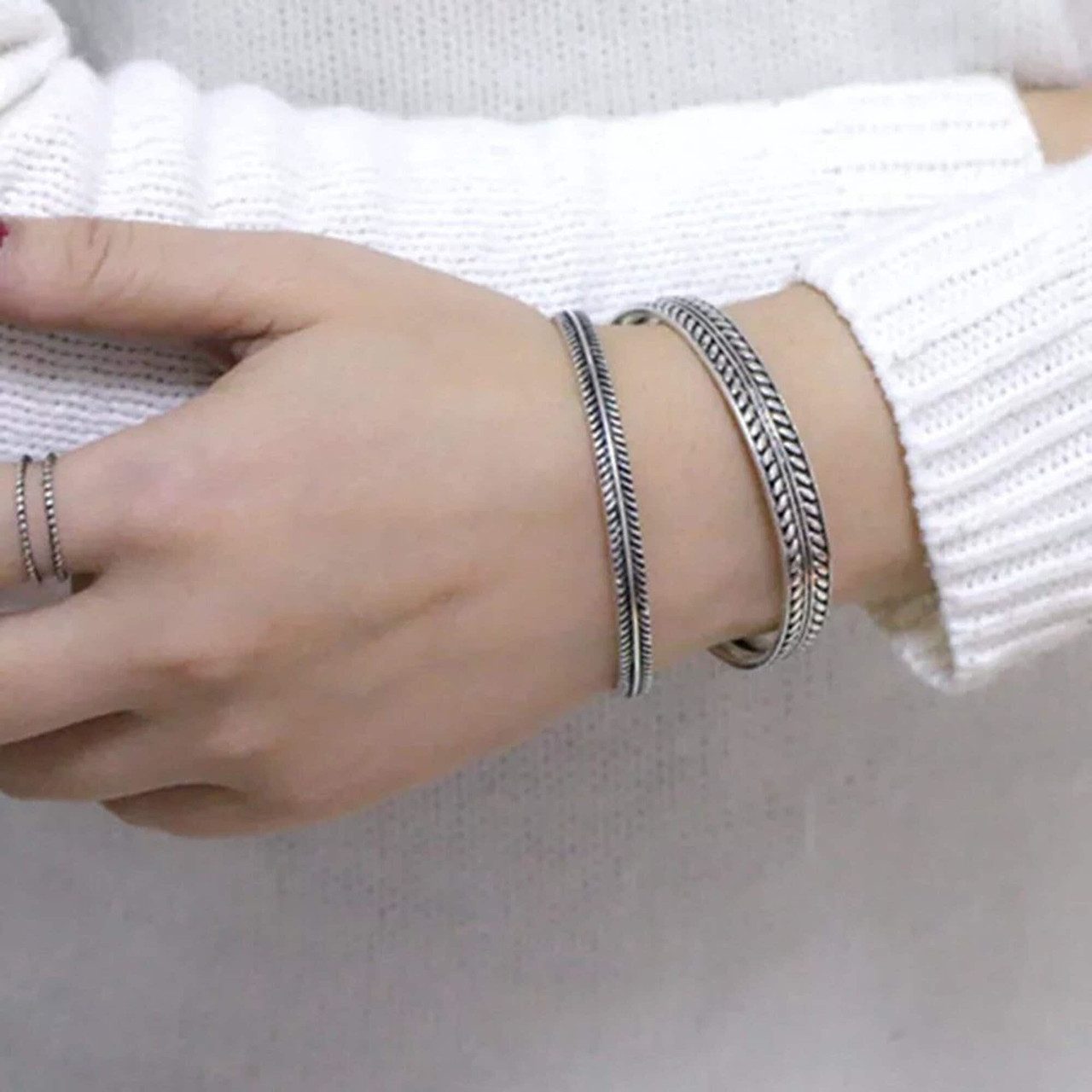 Silver Tibetan Bangle, Adjustable Mens Bangle, Leaf Open Cuff Bangle,