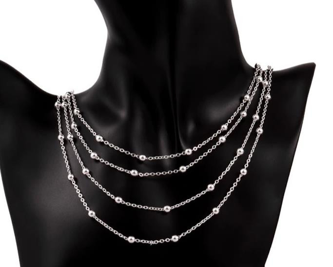 Sterling Silver Plated Ball Beaded 4 Multi Strand Layered Chain Necklace UK + Bag