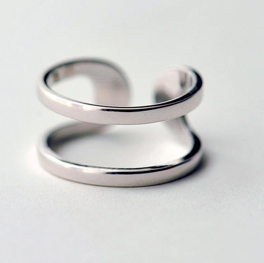 Sterling Silver Plated Ring Double Band/Circle/Line Adjustable Finger + Bag