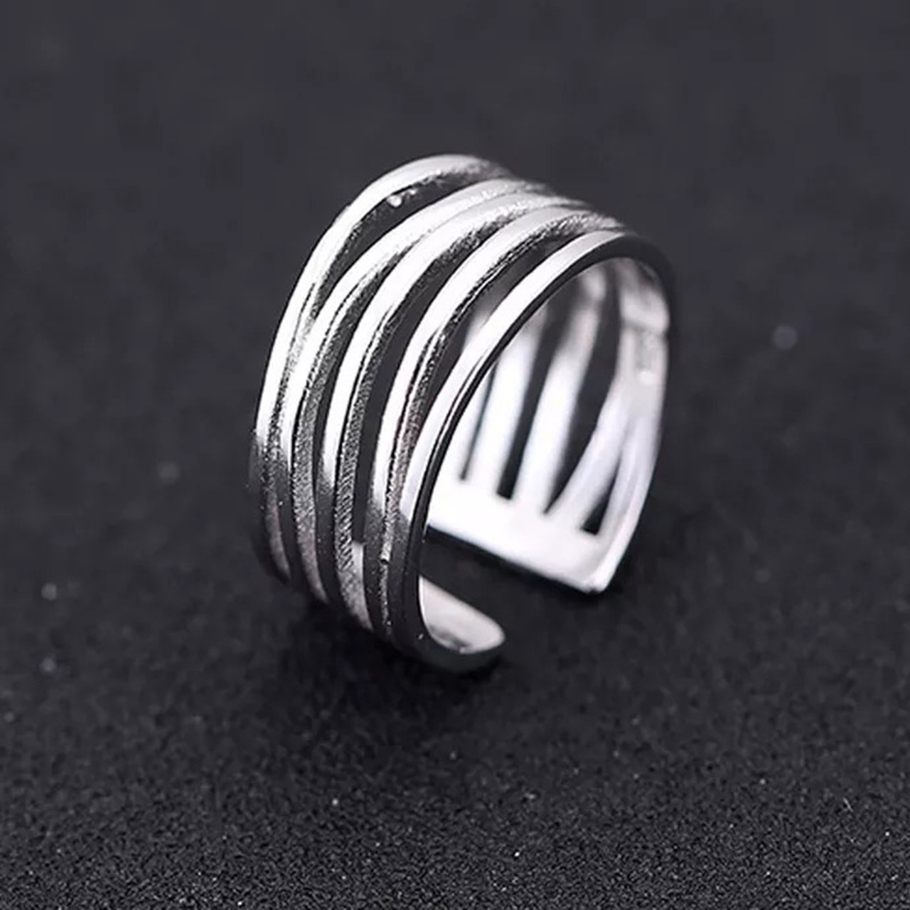 Stunning Multi Layer Wave Line Ring Finger 925 Sterling Silver Adjustable + Bag