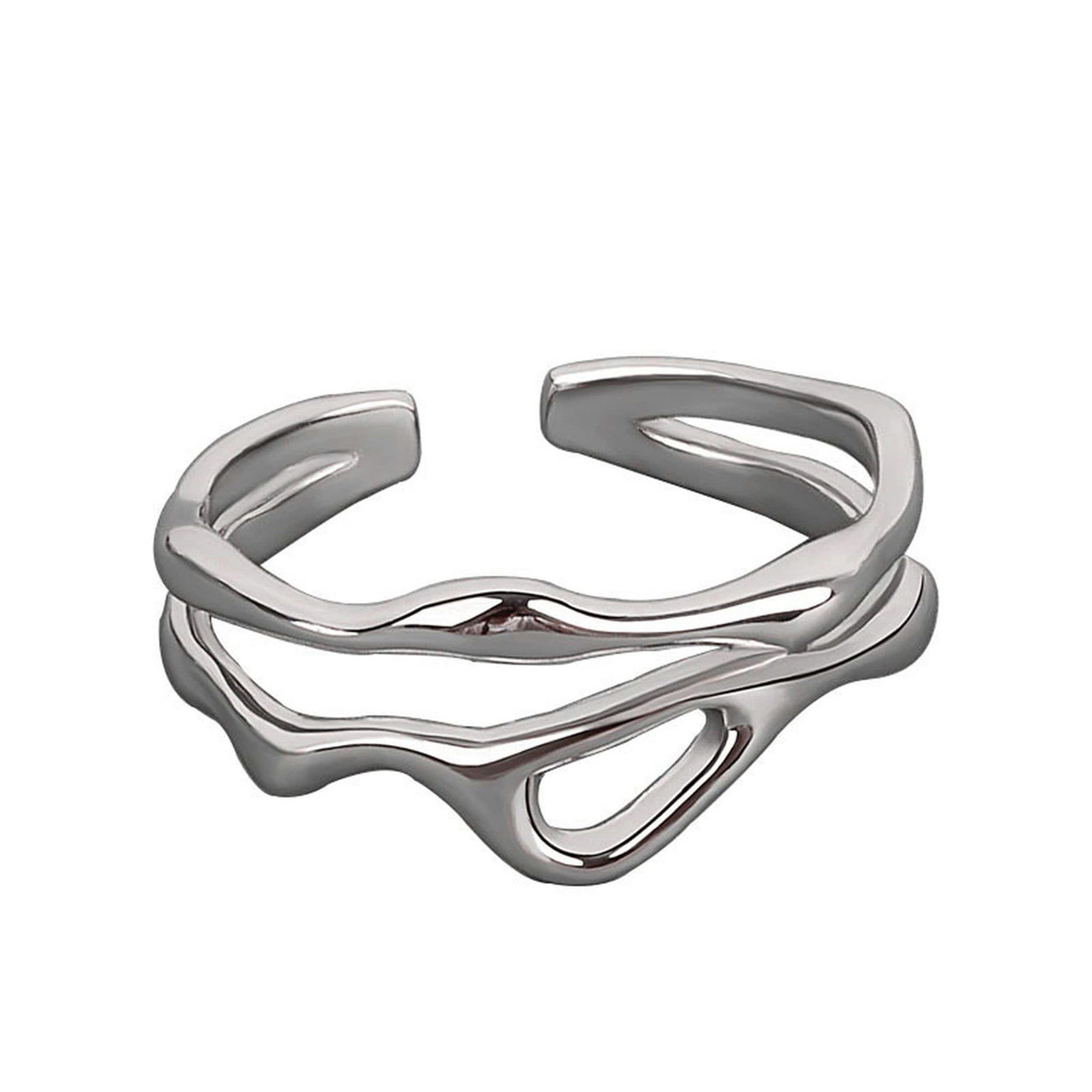 Thin Dainty Silver Ring | Liquid Metal Molten Ring | Irregular Abstract Ring| Adjustable/Resizeable Open Band | Minimalist Ring | Boho Ring