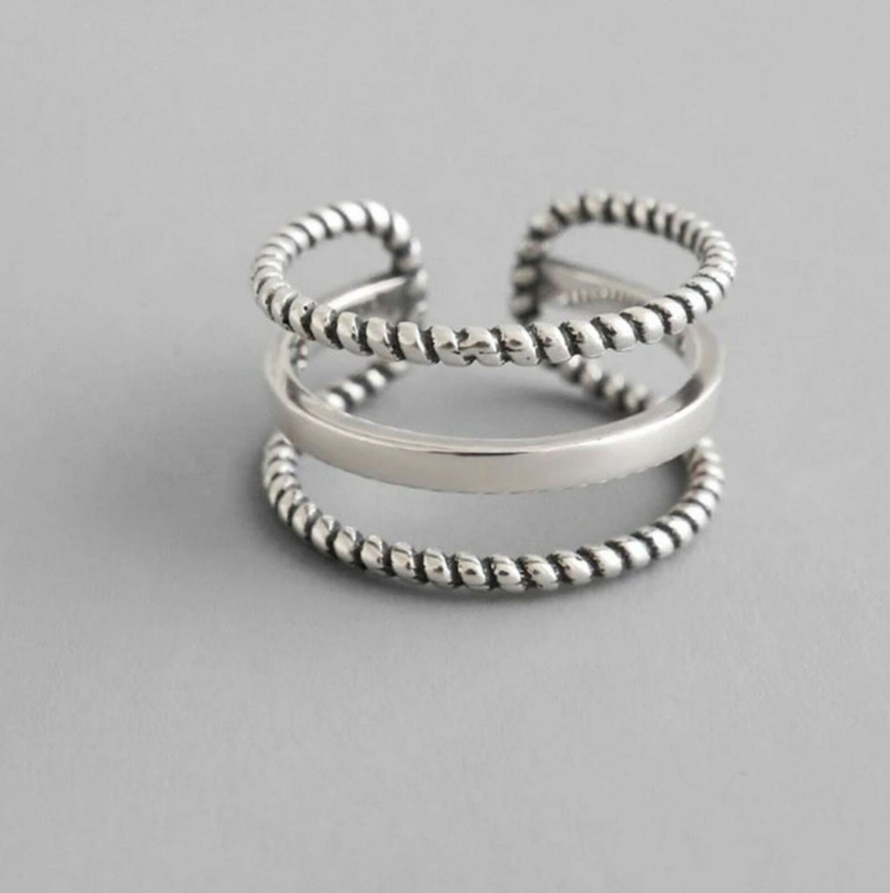 Triple Band Bead Ring Adjustable Sterling Silver Plated Finger +Bag
