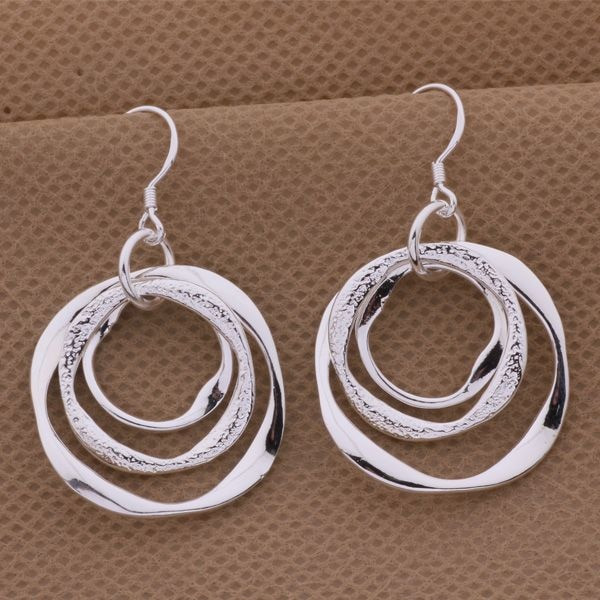 925 Sterling Silver Plated Triple Circle Drop Earrings + Bag UK Womens