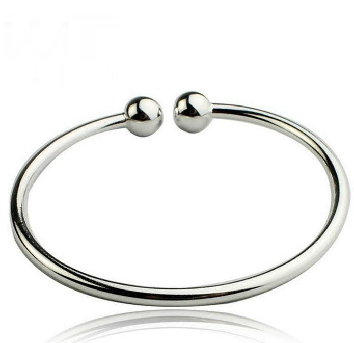 925 Sterling Silver Bangle Open Beads Bracelet Ladies Jewellery + Bag UK