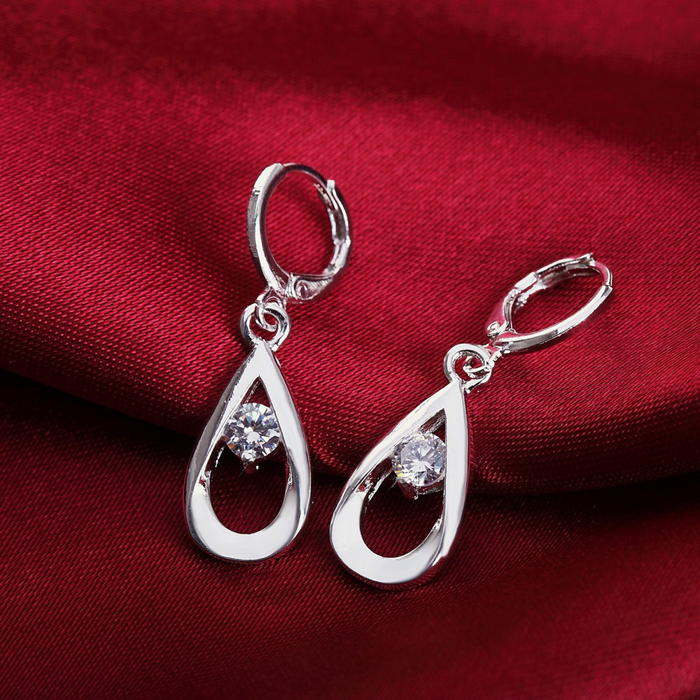 925 Sterling Silver Drop Dangle Earrings CZ Crystal inset