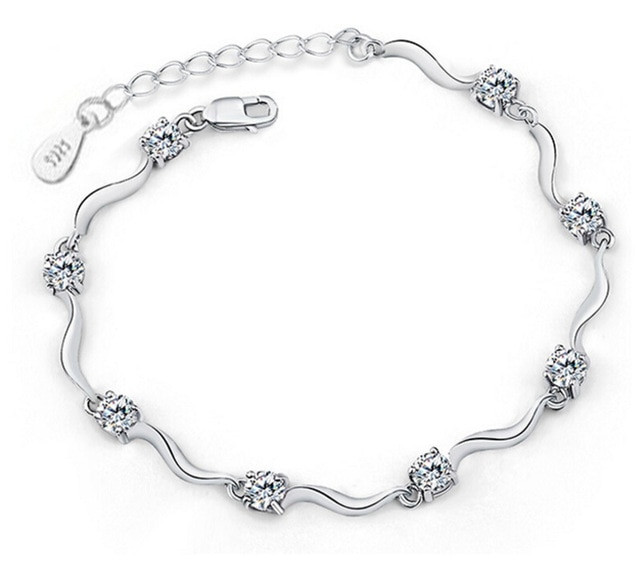 925 Sterling Silver Plated Four Claw Crystal CZ Bracelet 17cm + 3cm Womens + BagÂÂ