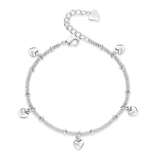 925 Sterling Silver Plated Hearts Bracelet 17cm + 3cm Adjuster + Gift Bag