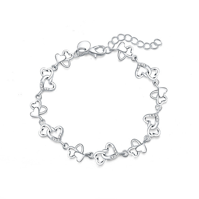 925 Sterling Silver Plated Hearts Charm Bracelet 20cm + Gift BagÂÂ