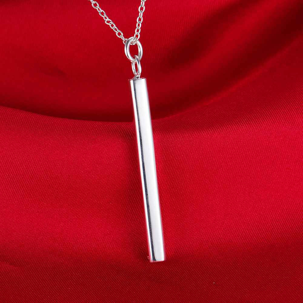 925 Sterling Silver Plated Long Bar Pendant Necklace 45cm + Gift Bag UK