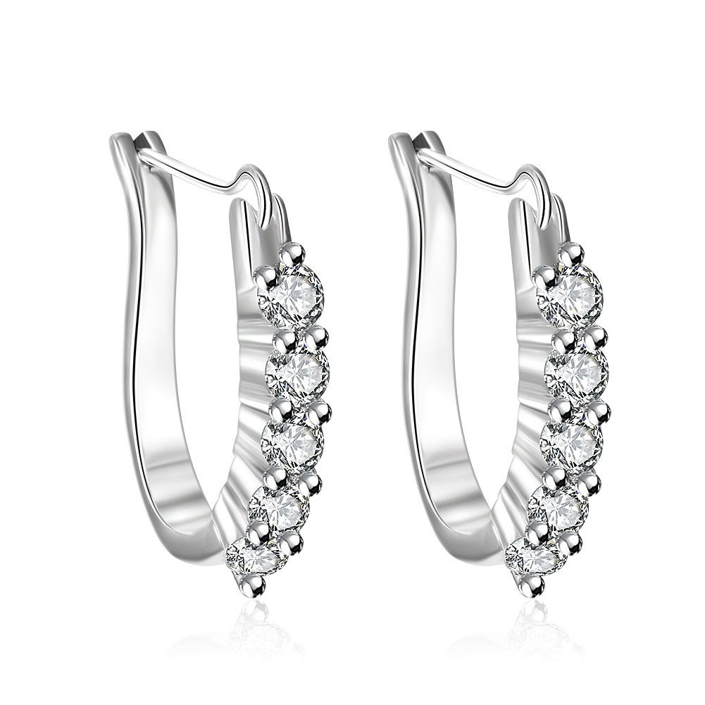 925 Sterling Silver Plated U Shape CZ Crystal Hook Earrings + Gift Bag