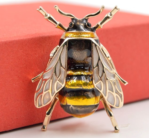 Bumble Bee Brooch Yellow Black Diamante Lapel Pin Broach + Gift Bag