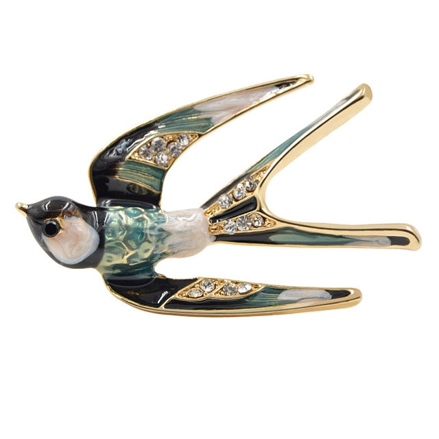 Swallow Bird Brooch Green Vintage Crystal Lapel Pin Broach + Gift Bag