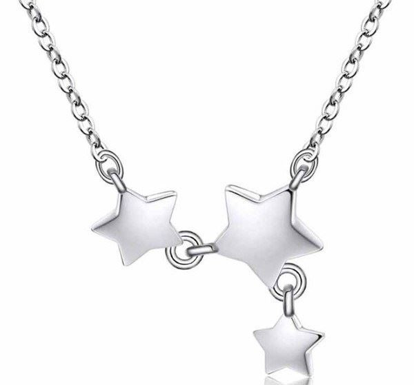 925 Sterling Silver Plated Shooting Stars Necklace Choker Crystal 40cm + 5cm + Gift Bag